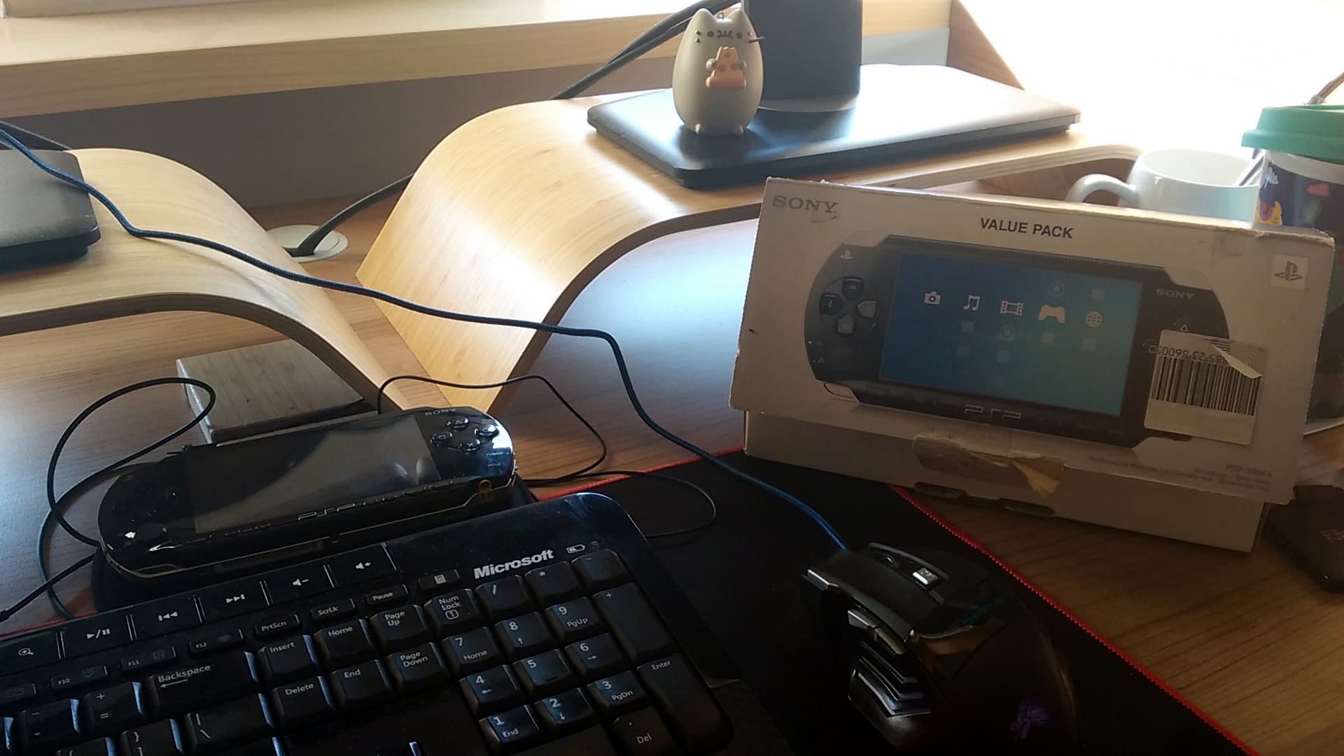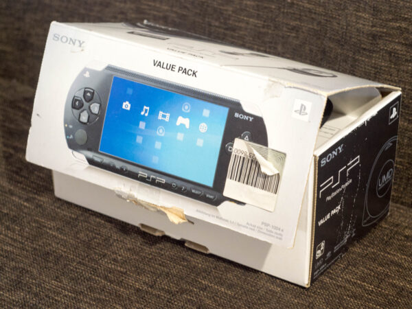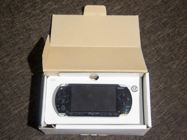 Zgodziłem się ochoczo! Konsola leżała w jego rodzinnym domu, w jednej z szuflad, dawno zapomniana i nieużywana… Jego dom rodzinny znajduje się na drugim końcu Polski, dlatego minęło kilka tygodni, zanim PSP trafiło w moje ręce, ale w końcu się udało! Pewnego dnia przyszedłem do biura, patrzę na moje biurko, a tam… Pudełko z konsolą!