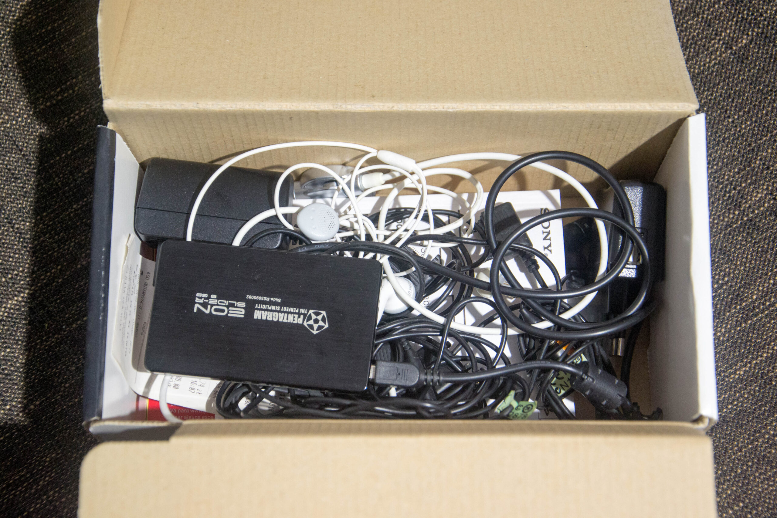 Karty gwarancyjne, dodatkowe instrukcje, kilka starych ładowarek telefonicznych (chociażby do telefonu nieistniejącej już marki Sony Ericsson), a także jeszcze więcej zbytecznych kabli.