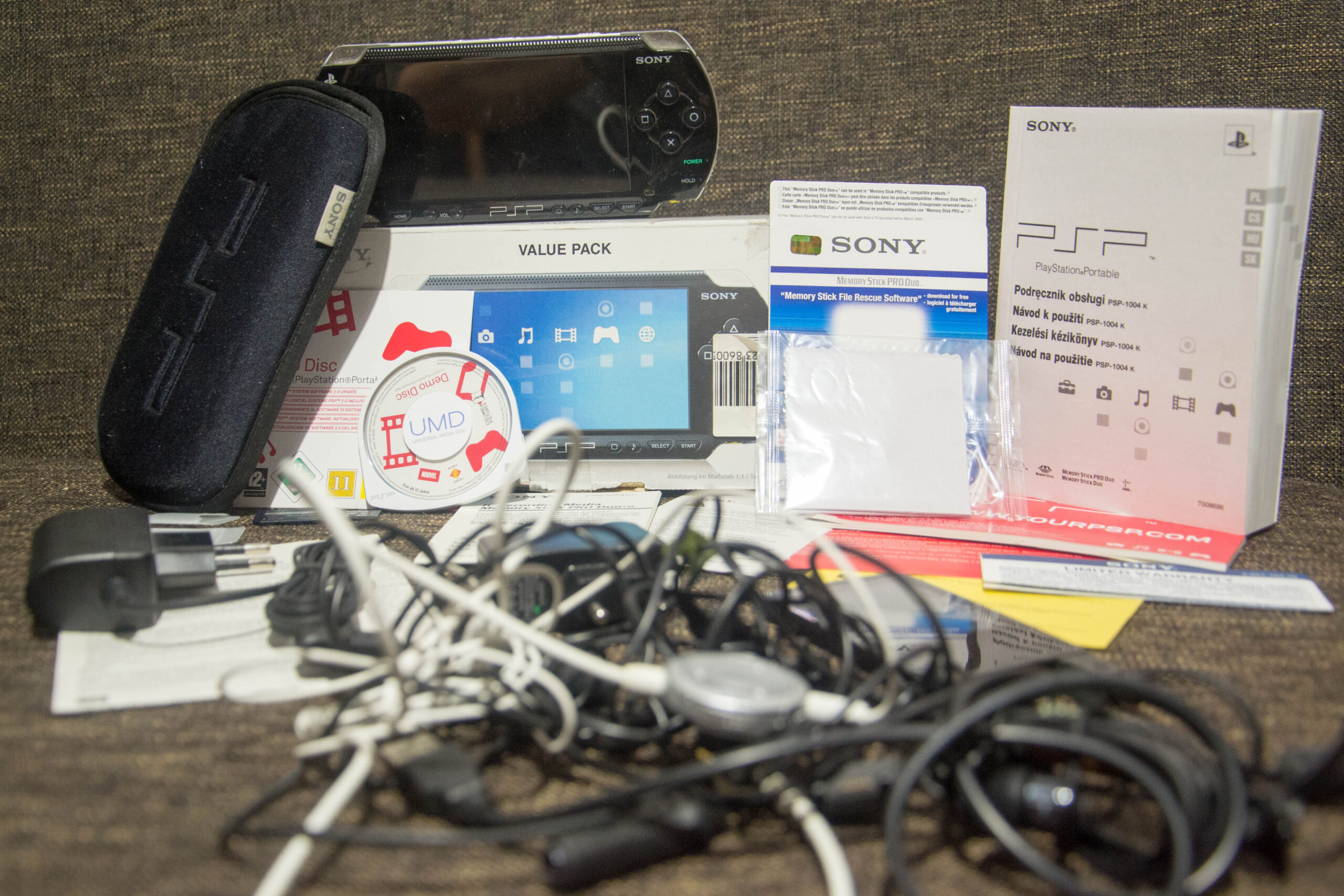 Dostałem PSP FAT — czarne, klasyczne, z martwą baterią, pudełkiem i masą ulotek!