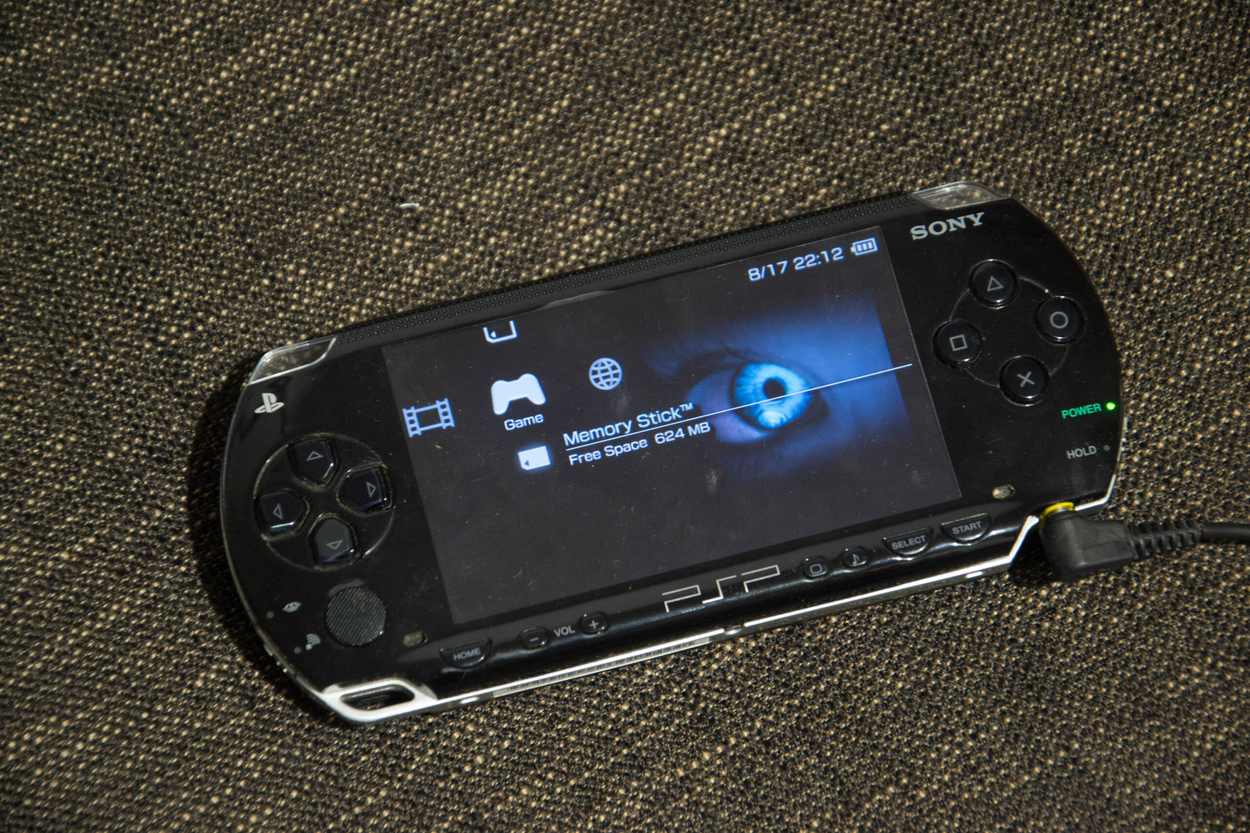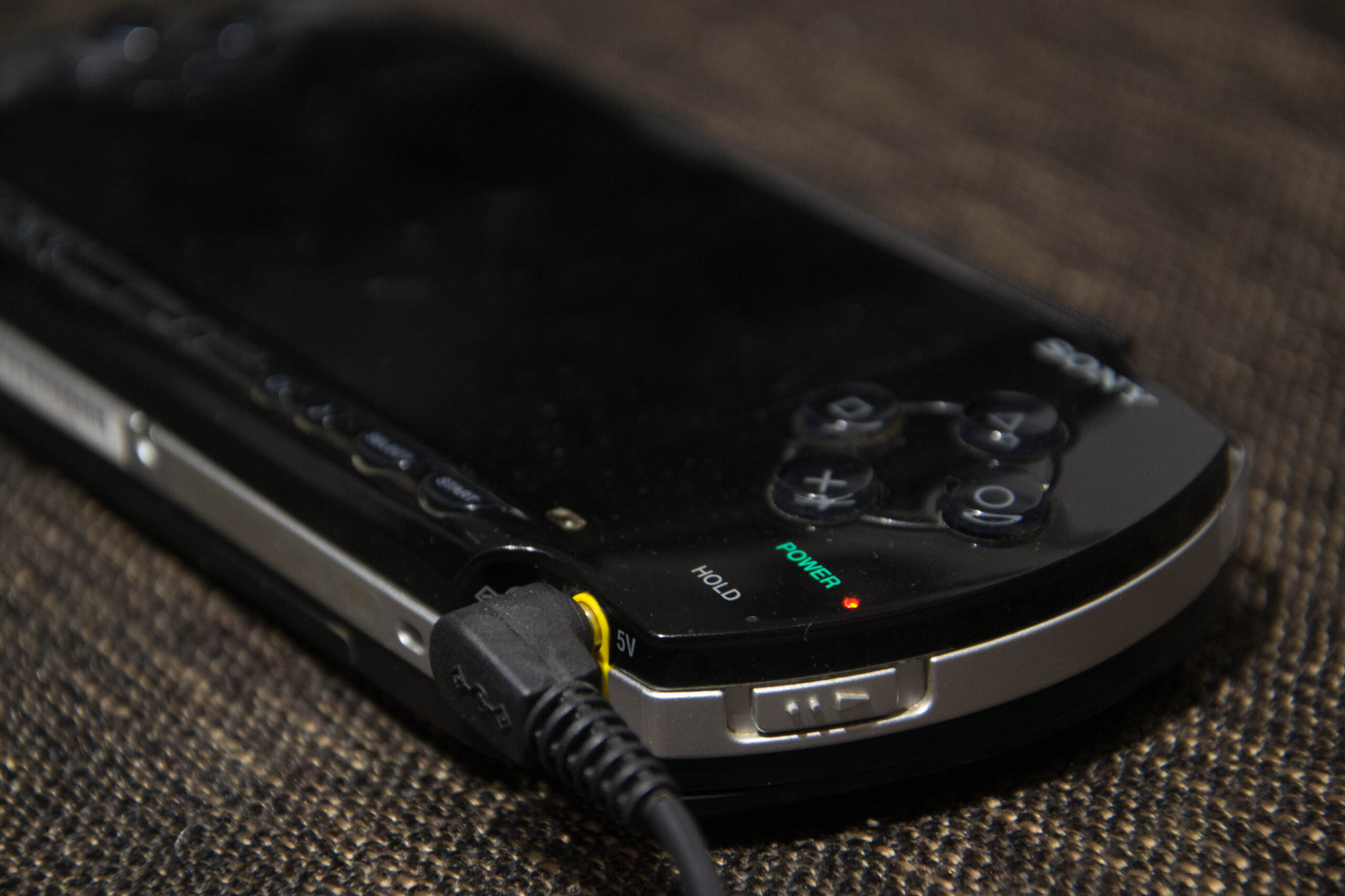 Po podłączeniu konsoli do prądu (ładowarką od mojej pierwszej konsoli PSP) dałem jej około pół godziny na podładowanie baterii do stanu „używalności” – w końcu konsola nie była ładowana od kilku ładnych lat.